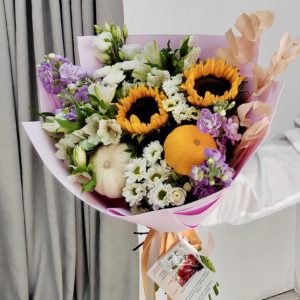 В НАЛИЧИИ, собран в размере 35*45 см «Витрина онлайн» – это готовые букеты цветов в нашей холодильной витрине. Они уже собраны и готовы к отправке прямо сейчас. Время получения — от 40-90 минут (точное время доставки рассчитывается, исходя из расстояния и дорожной обстановки).