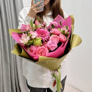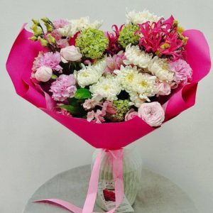 Готовый букет 40/50 см | Хризантема, альстромерия, диантусы | Доставка 30 мин