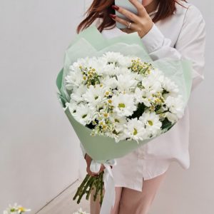 Готовый Букет «Солнечное настроение» | Хризантема кустовая с ромашкой 30/50 см