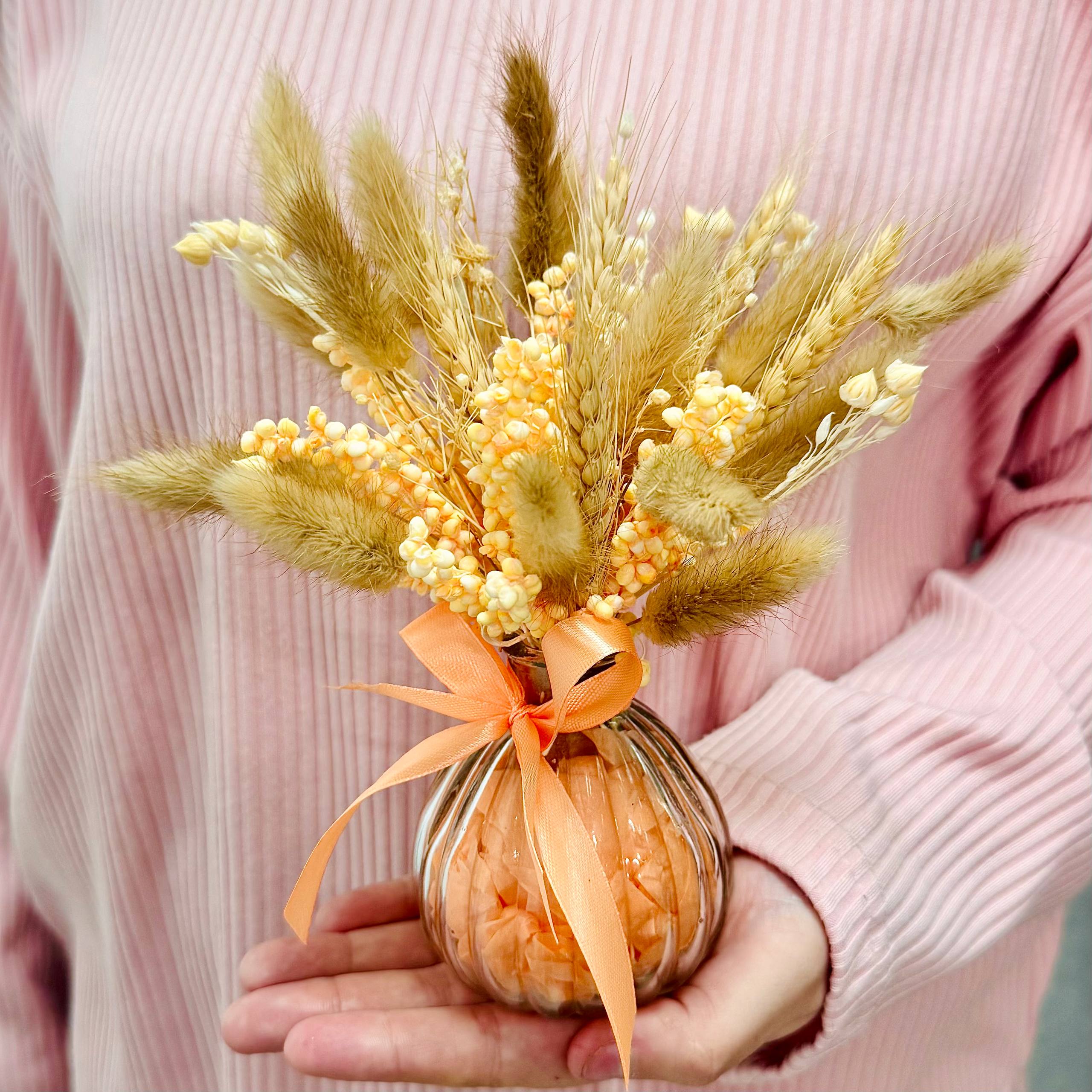 Идеальное сочетание природы и искусства! Эта цветочная композиция создана из натуральных сухоцветов и стабилизированных растений, которые сохраняют свежесть и яркость на годы. Каждый элемент тщательно подобран, чтобы подчеркнуть утонченность и гармонию, превращая ваш интерьер в оазис элегантности.