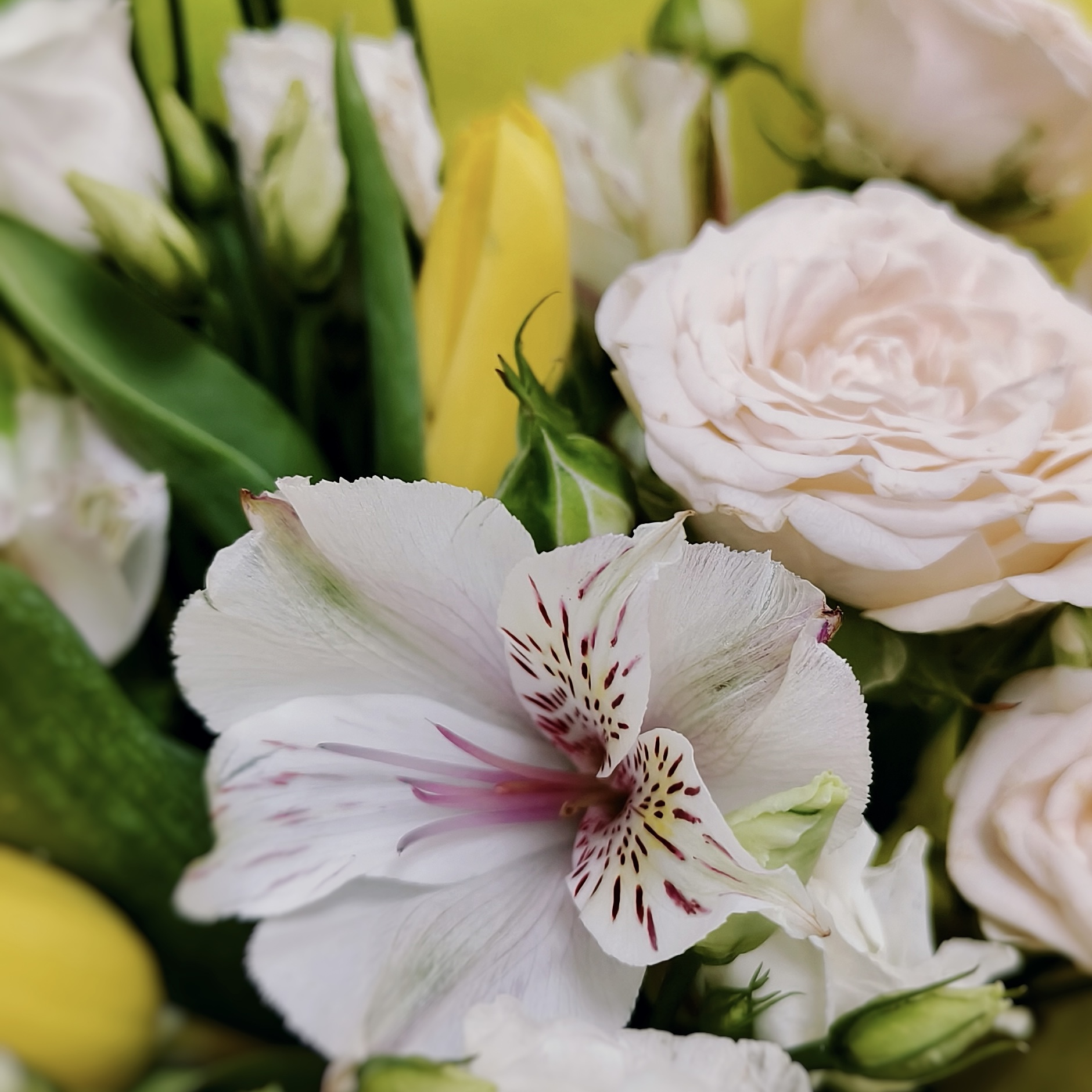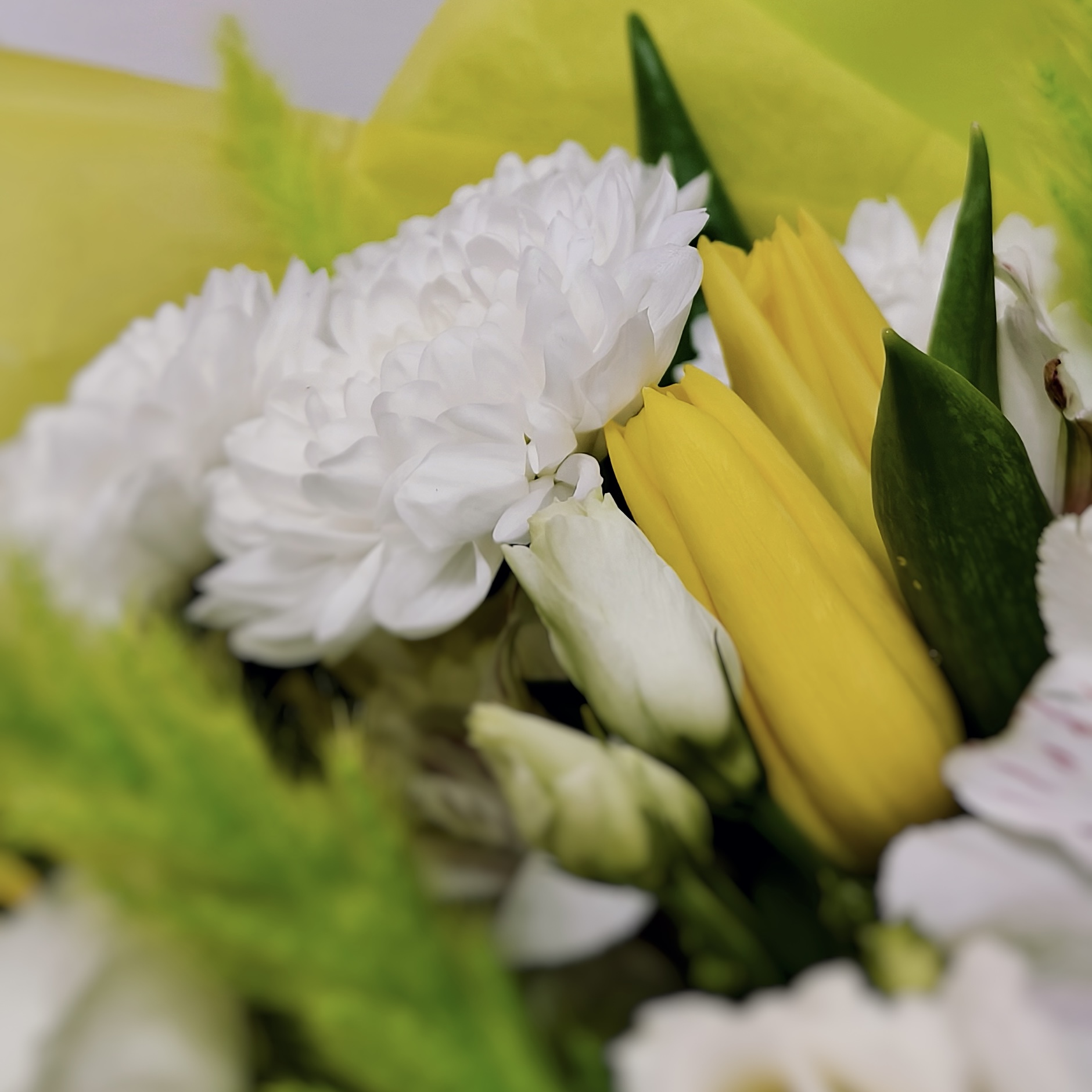 Хотите подарить кусочек солнечного света? В цветочном салоне «Гран При» в Бердске вас ждёт готовая композиция, которая своим цветом поднимает настроение. Сочетание ярких тюльпанов, нежных бутонов кустовой розы и объёмной хризантемы создаёт гармоничный и стильный букет.