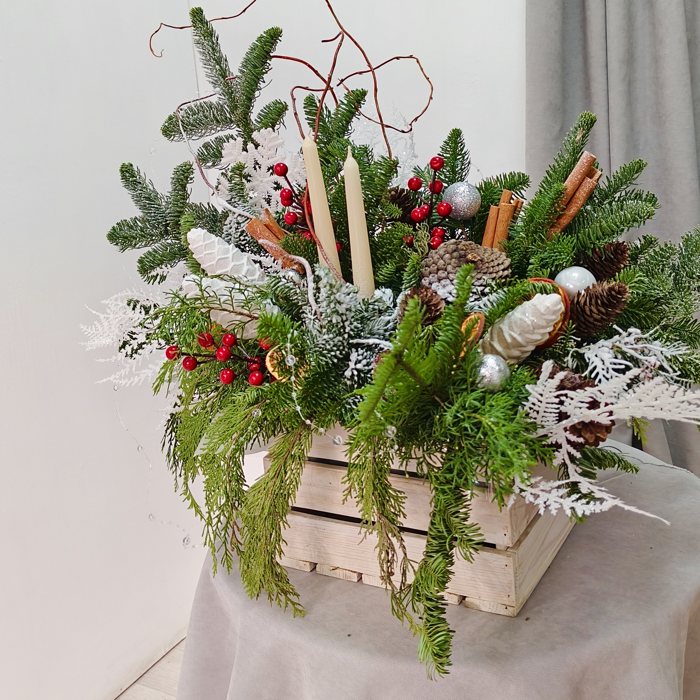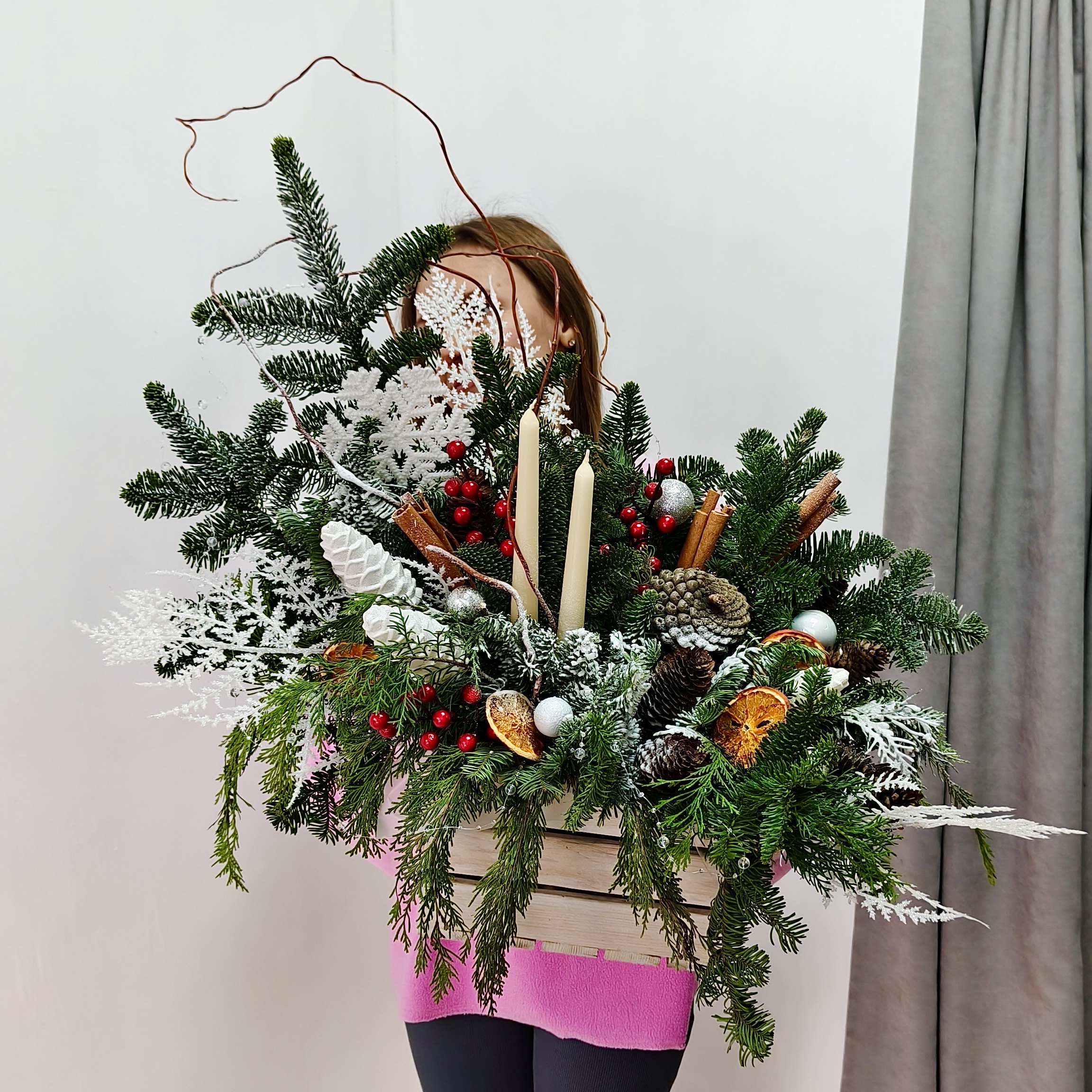 Готовая новогодняя композиция для дома | Свечи, апельсины, корица