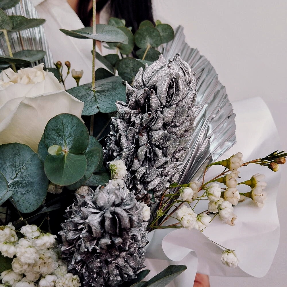 Элегантность, достойная античных времён, в современном исполнении. Эта готовая композиция в стильной античной вазе (размер 40/50 см) станет изысканным украшением интерьера и запоминающимся подарком для ценителей красоты. Пышная пионовидная роза с её бархатистыми лепестками — королева букета, изящный антиринум (львиный зев) добавляет вертикальную динамику и яркие акценты, а хамелациум с его мелкими игольчатыми листьями привносит свежесть и необычную текстуру. Всё это — в античной вазе, которая сама по себе является произведением искусства и не требует дополнительной упаковки.