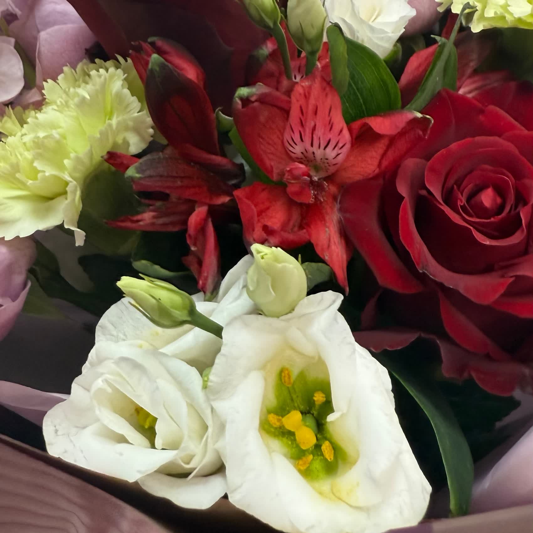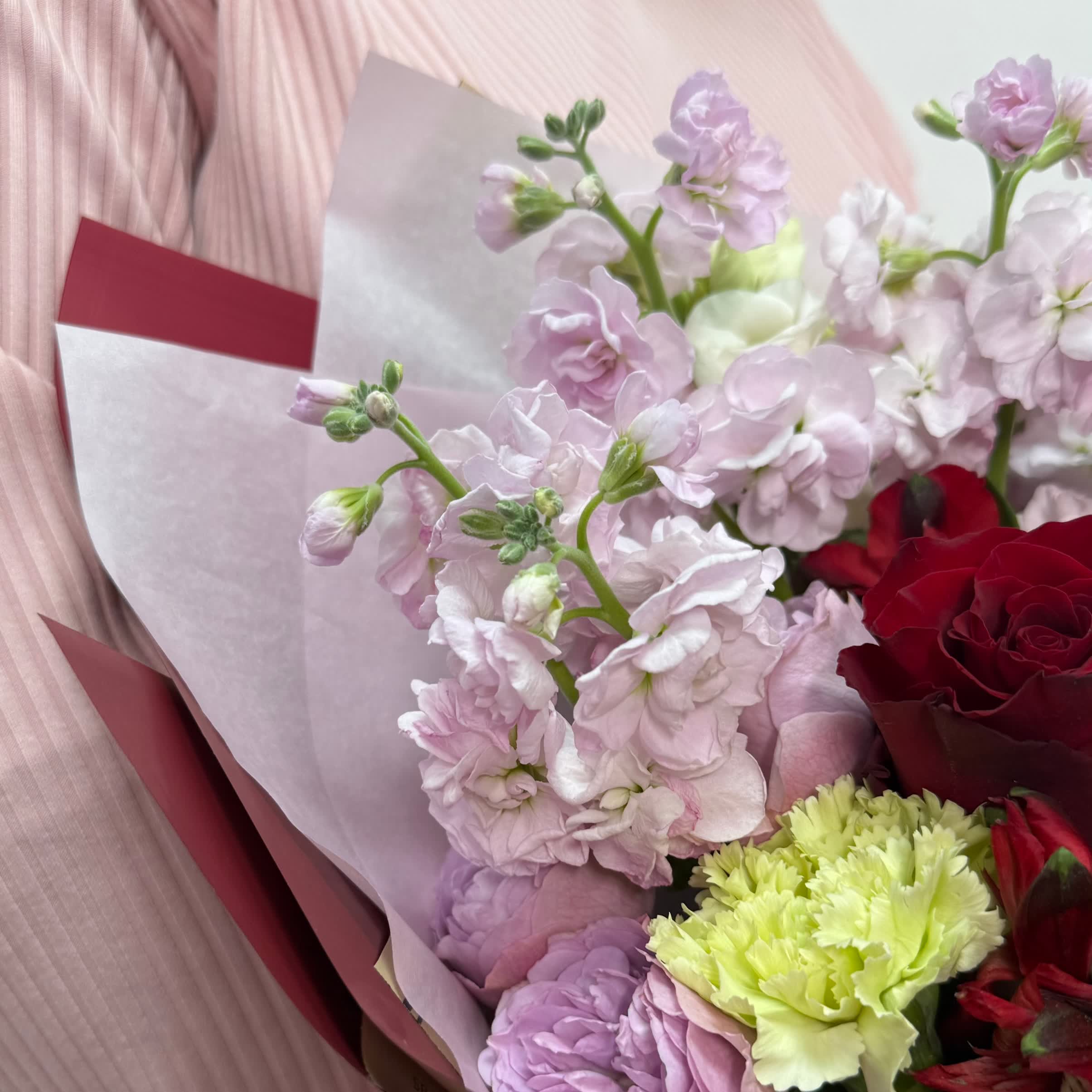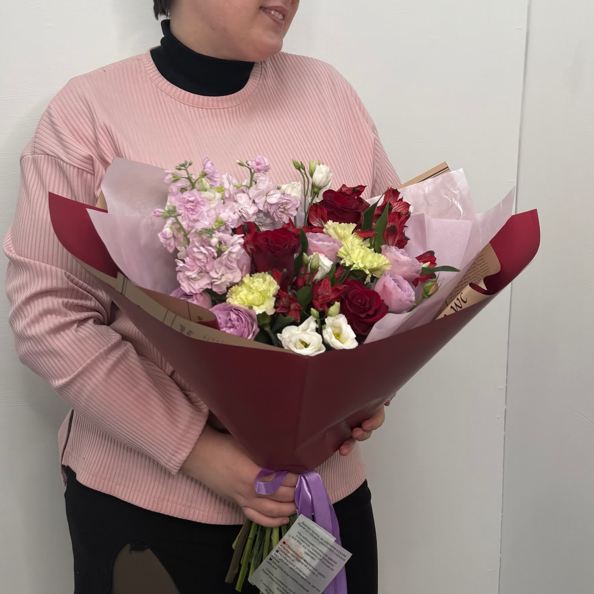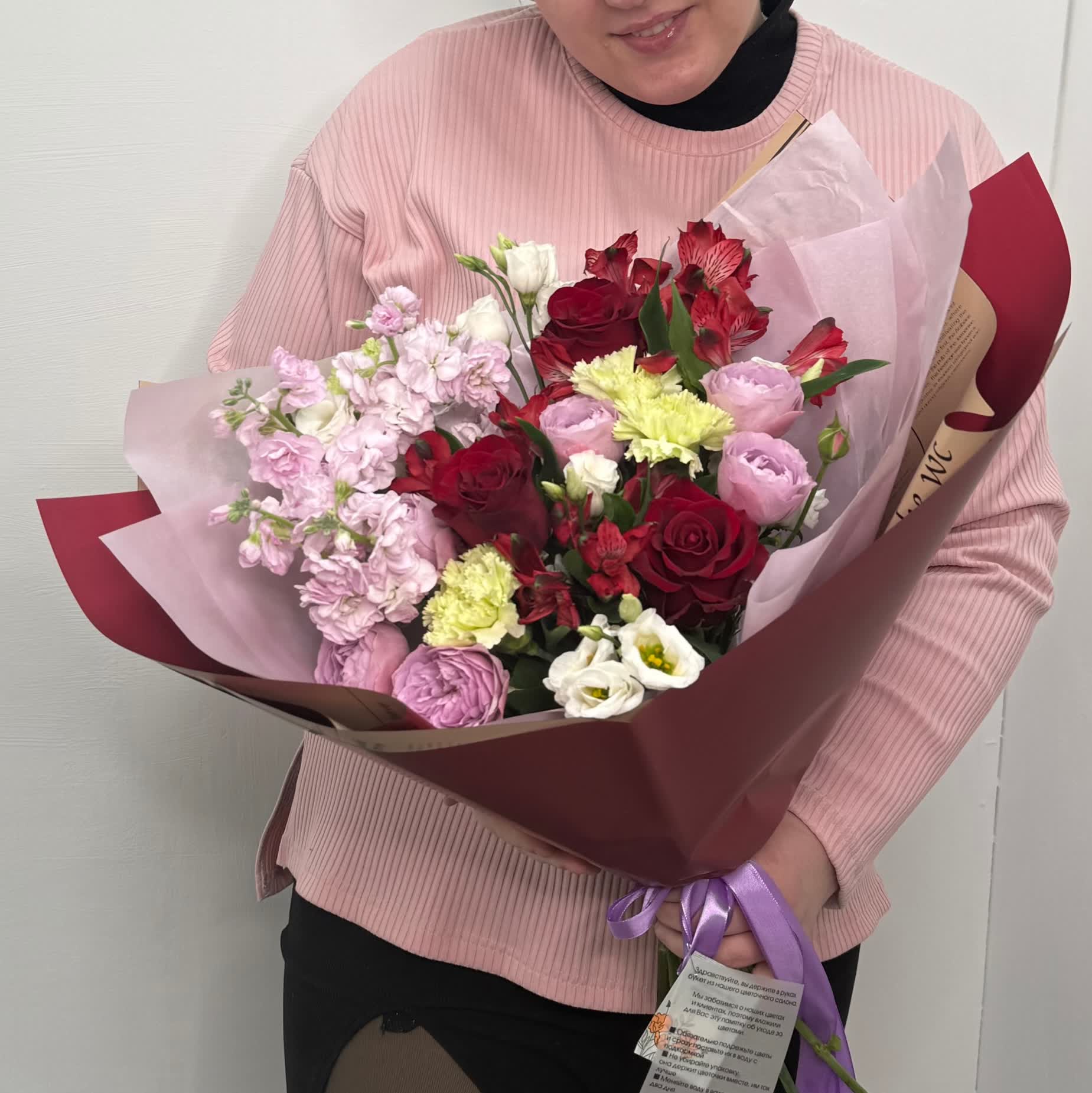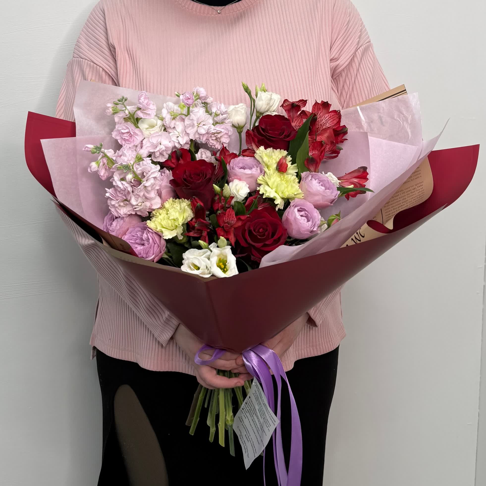 Готовый Ароматный букет из левкоя, розы и альстромерии