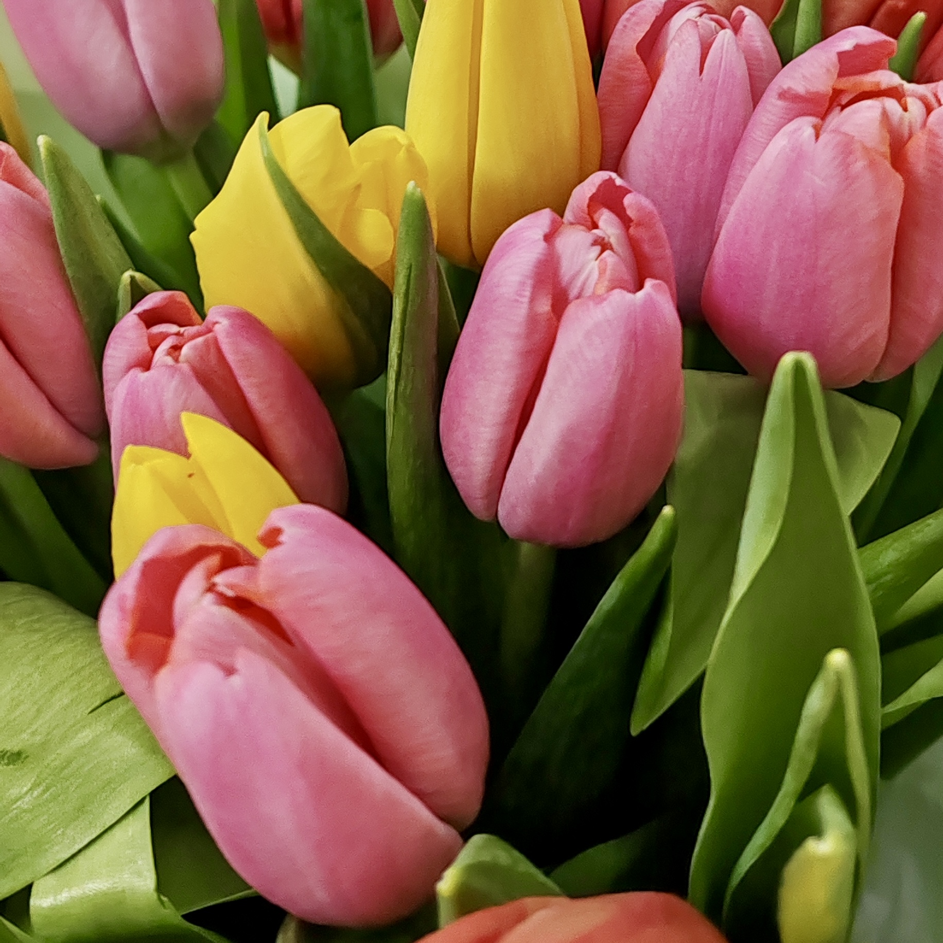 Готовый букет из 35 тюльпанов в Яркой гамме