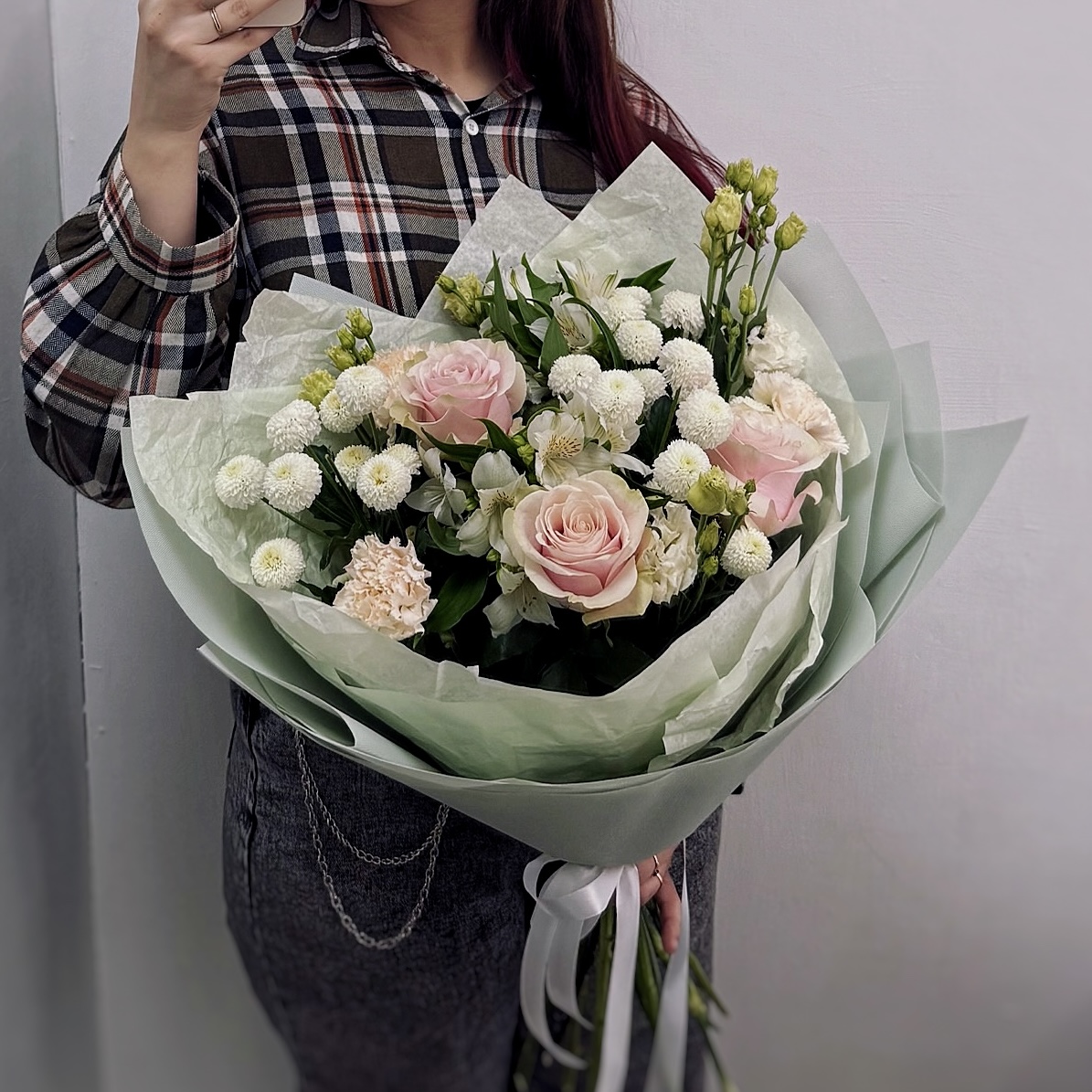 Закажите этот нежный букет прямо сейчас, и мы доставим его получателю с доставкой от 30 минут по городу! Только свежие цветы и безупречная работа флористов. Гвоздики и хризантемы известны своей стойкостью — букет будет долго радовать свежестью, напоминая о вашем внимании.