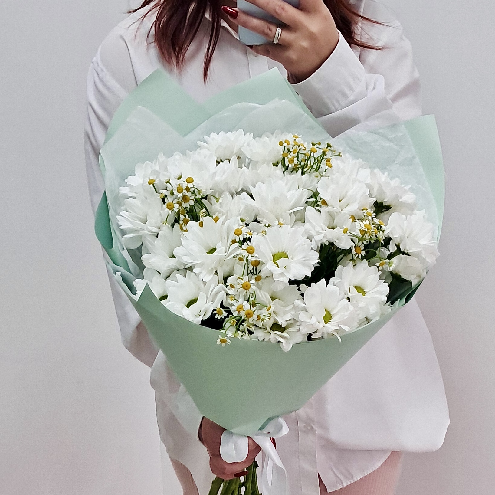 Готовый Букет «Солнечное настроение» | Хризантема кустовая с ромашкой 30/50 см