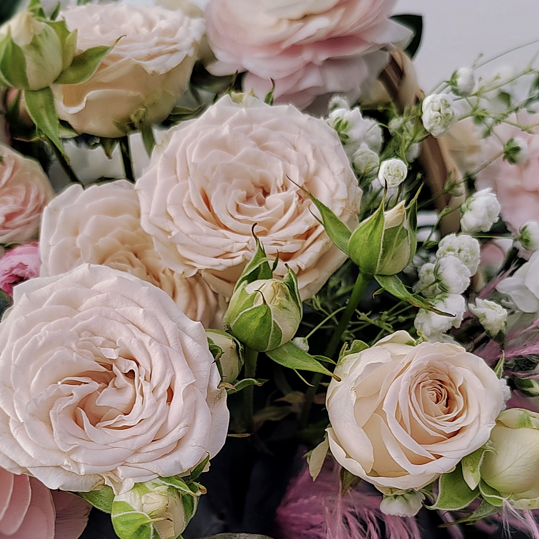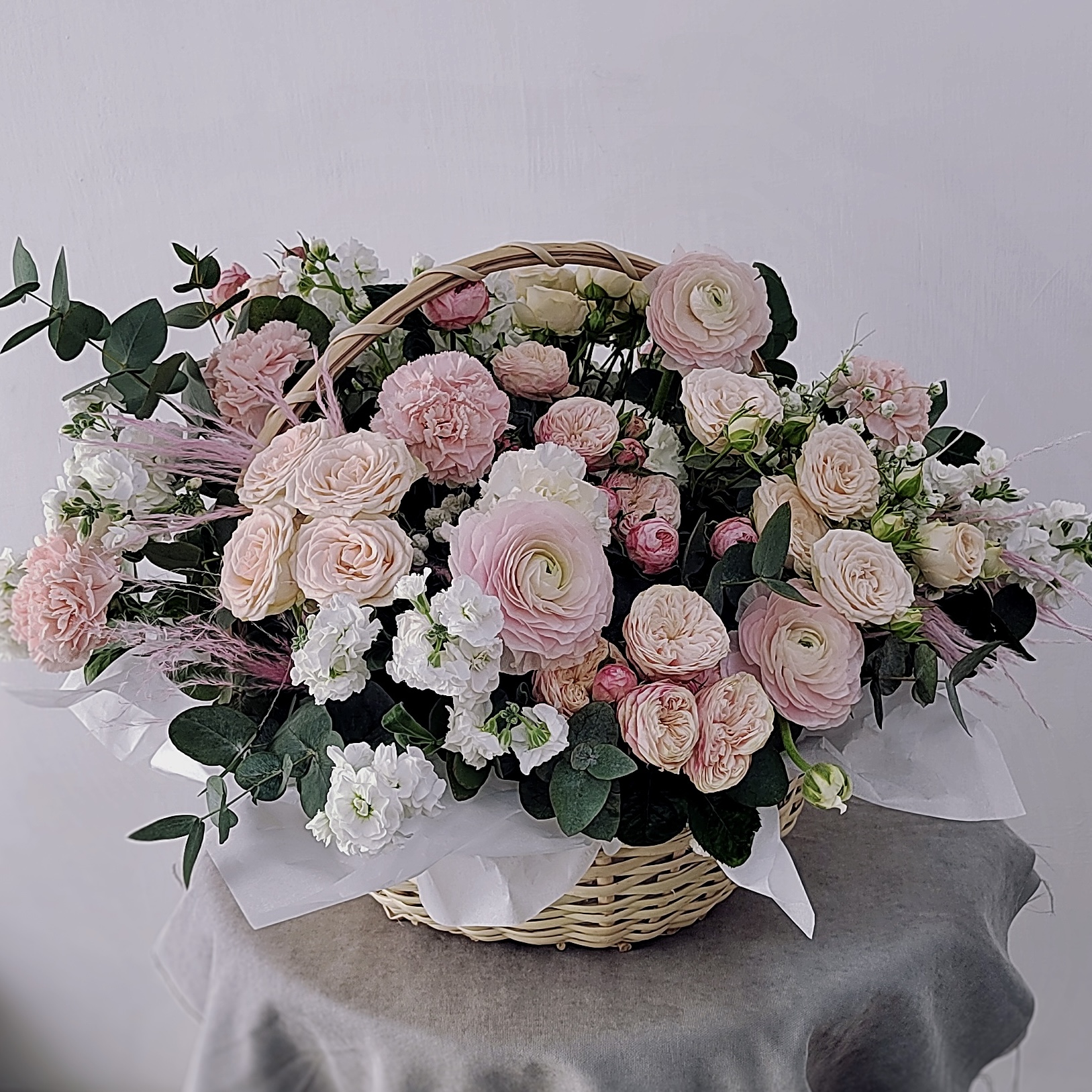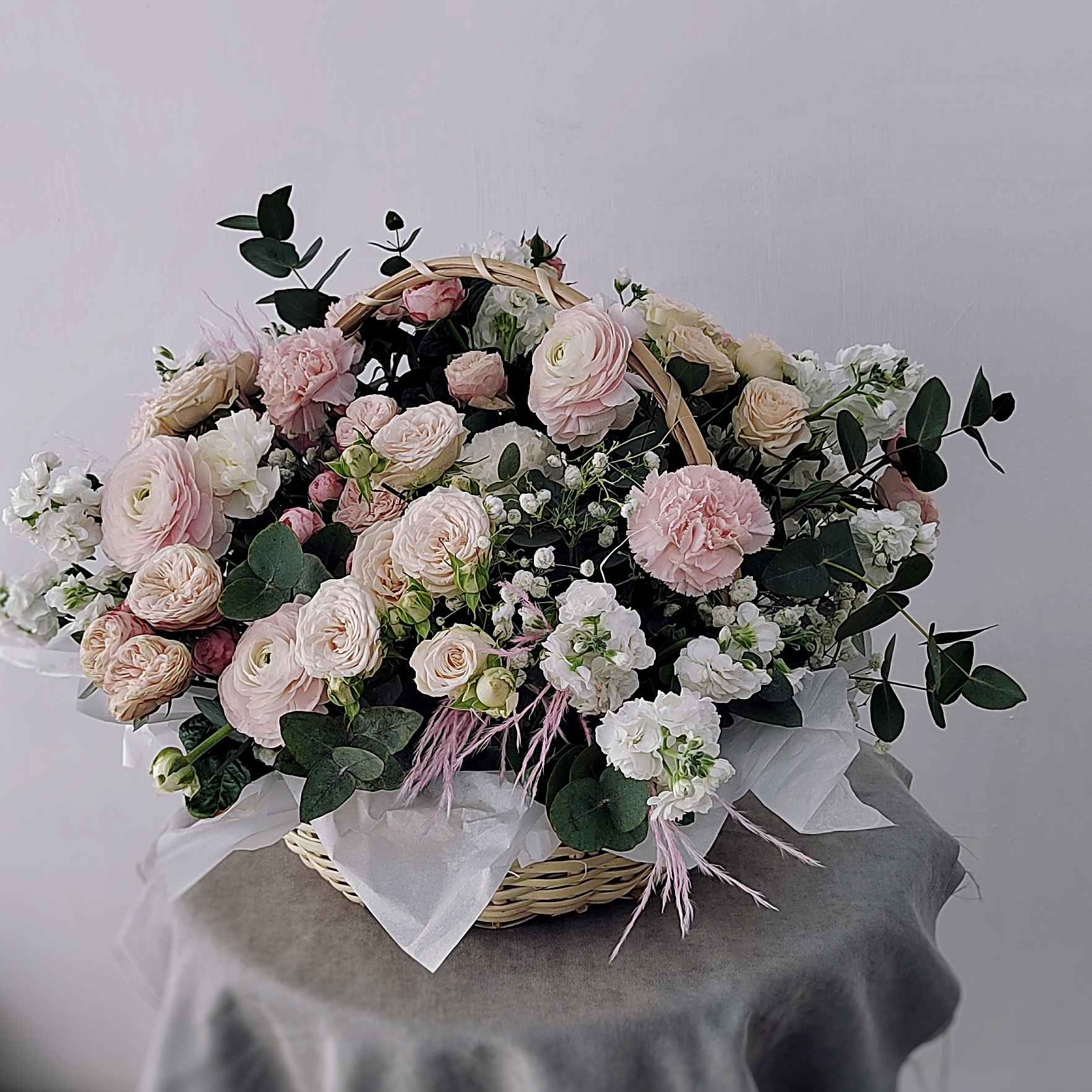 Все цветы и растения помещены в плетеную корзину, что делает букет объемным и пышным. Ваша возлюбленная будет в восторге! Намекните ей на свои чувства прямо сейчас, закажите букет «Моя».