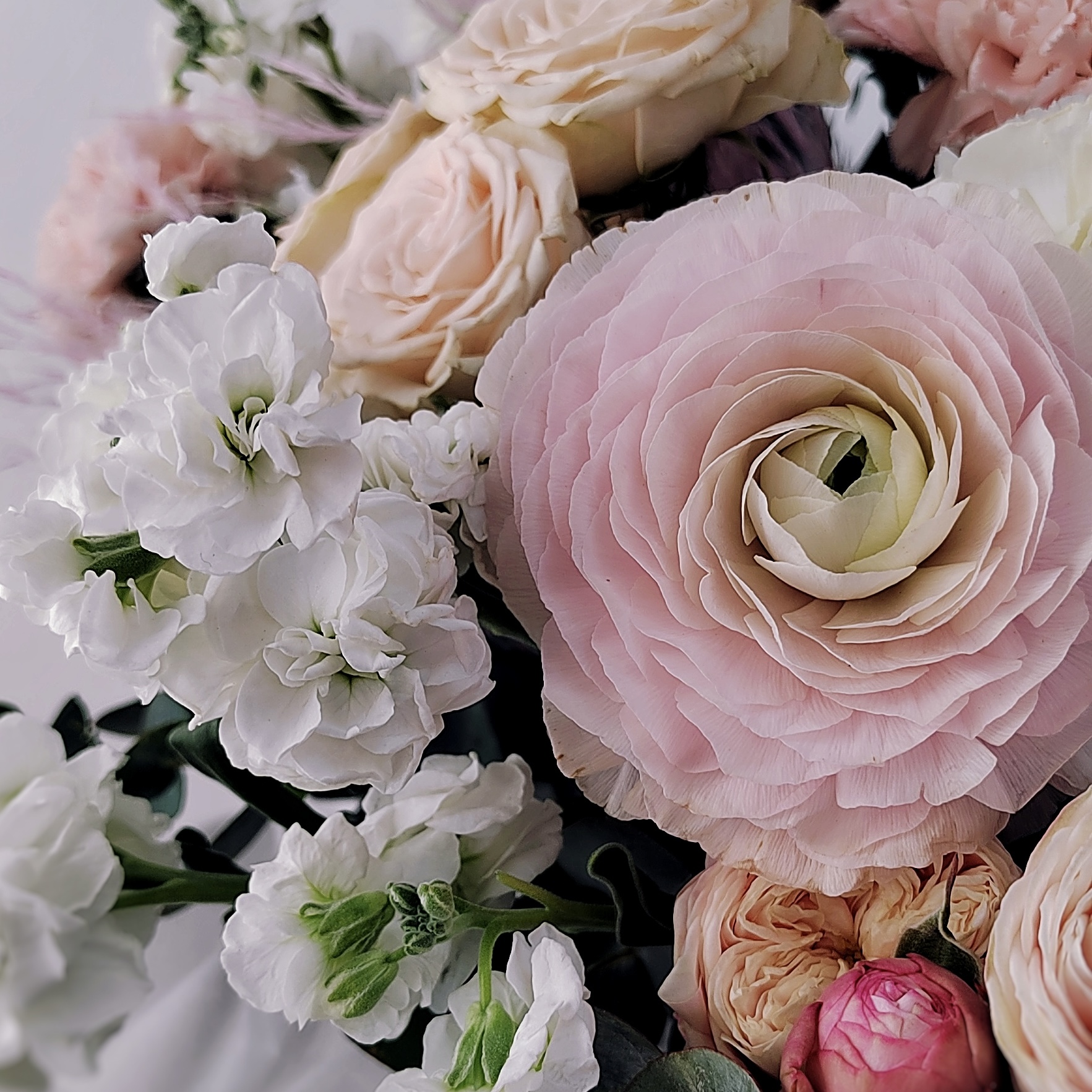 Мы оставляем за собой право определять состав букета, поскольку очень придирчиво относимся к качеству цветка и выбираем только безупречно свежие сорта, которые есть в наличии у поставщиков в данный момент.