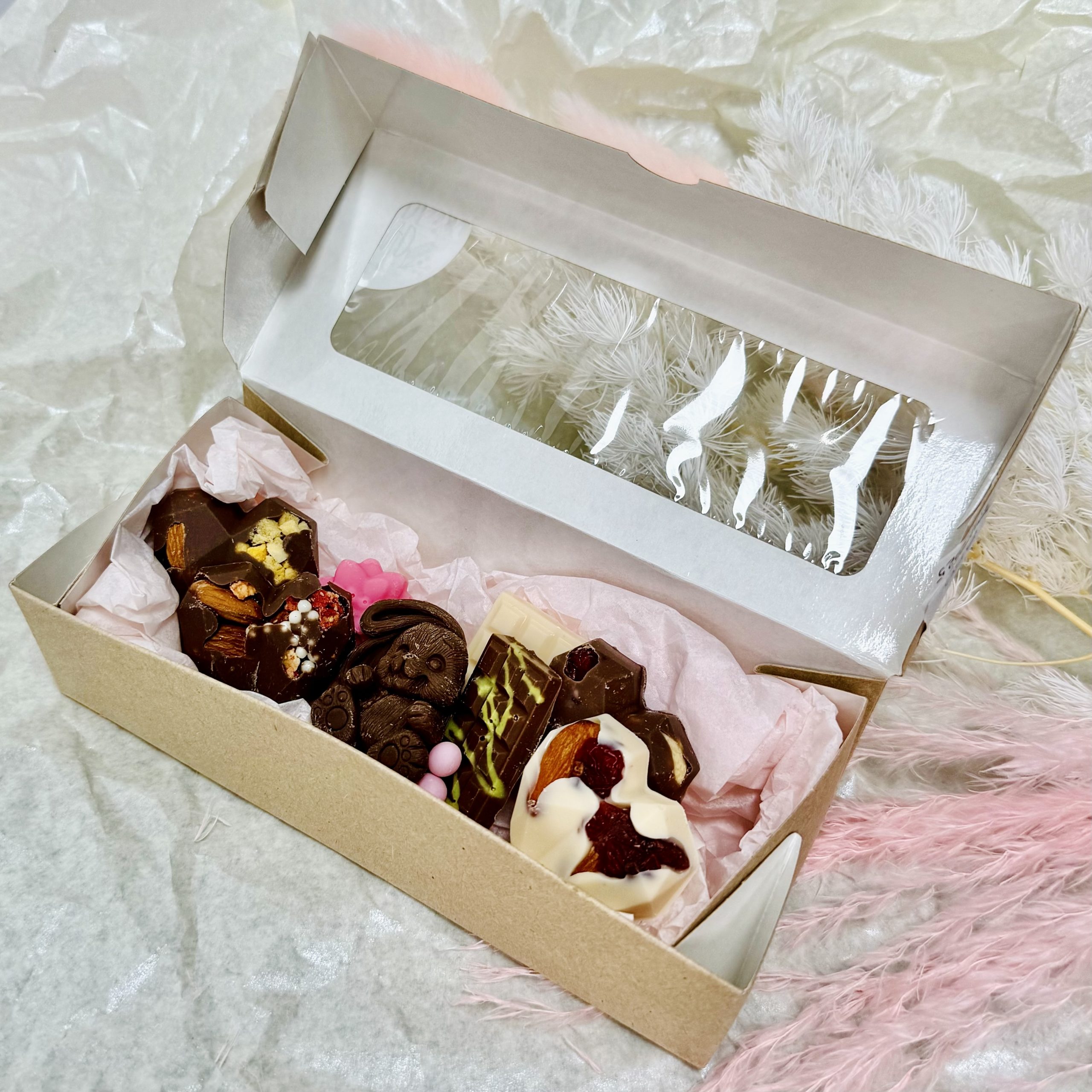 Вкусный набор шоколада ручной работы. Прекрасный дополнение к цветочному подарку на день рождения, юбилей или просто как знак внимания и поддержки.