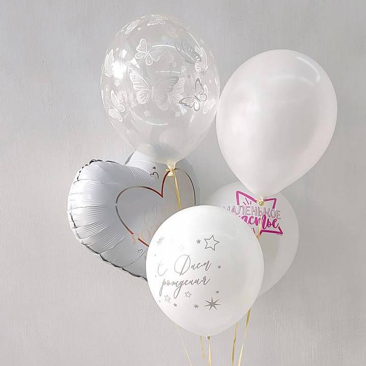 Охапка воздушных шаров «С днем рождения, маленькое счастье»