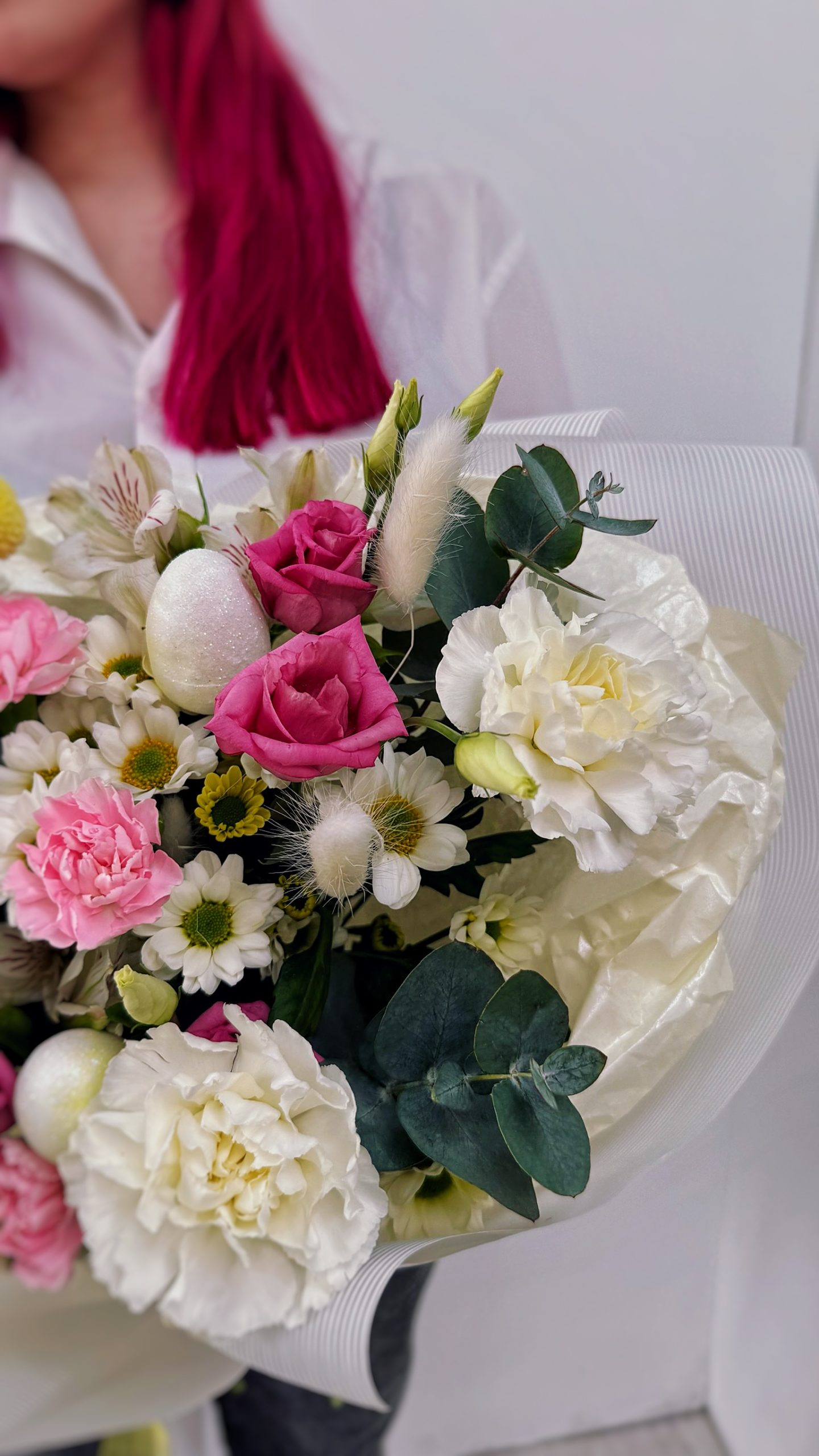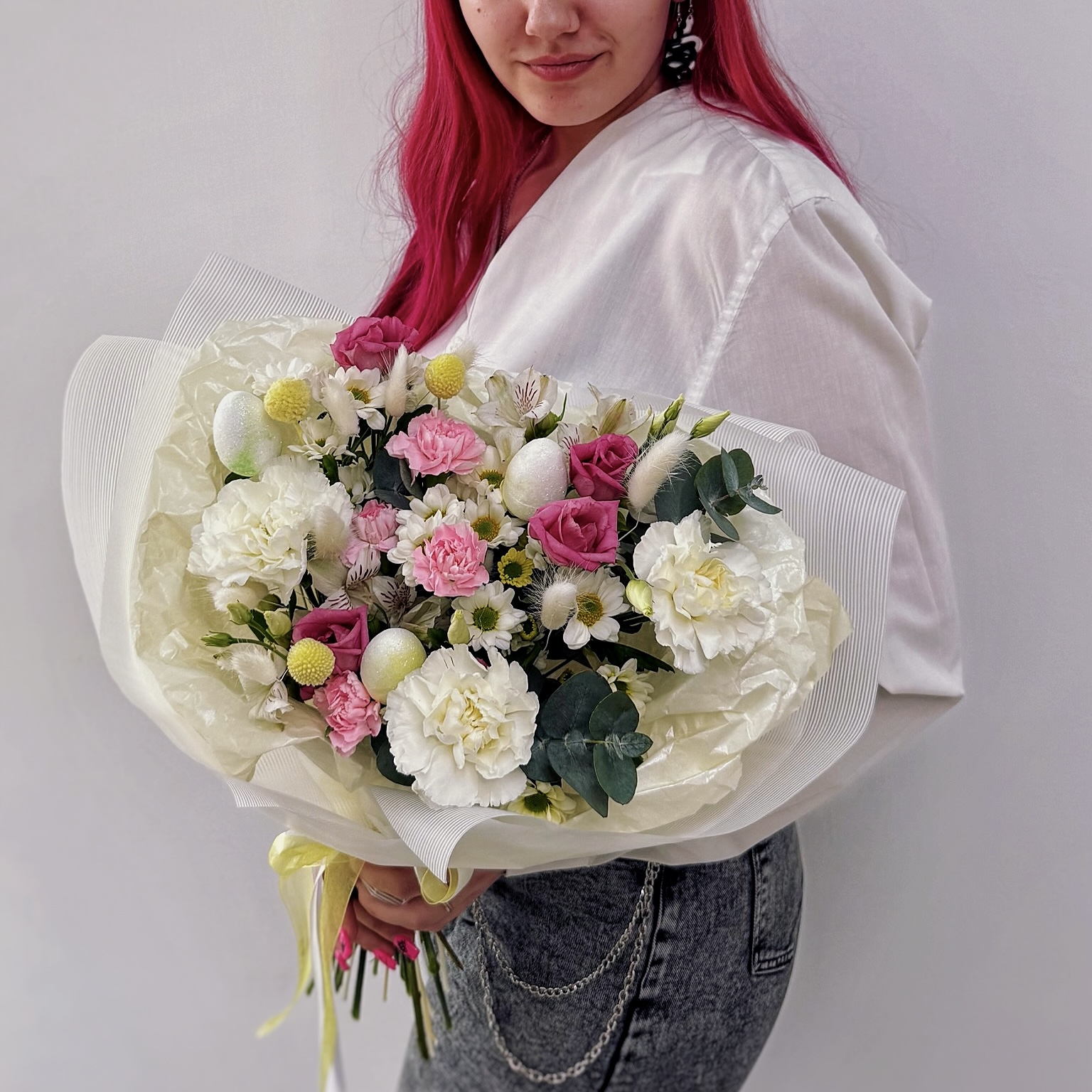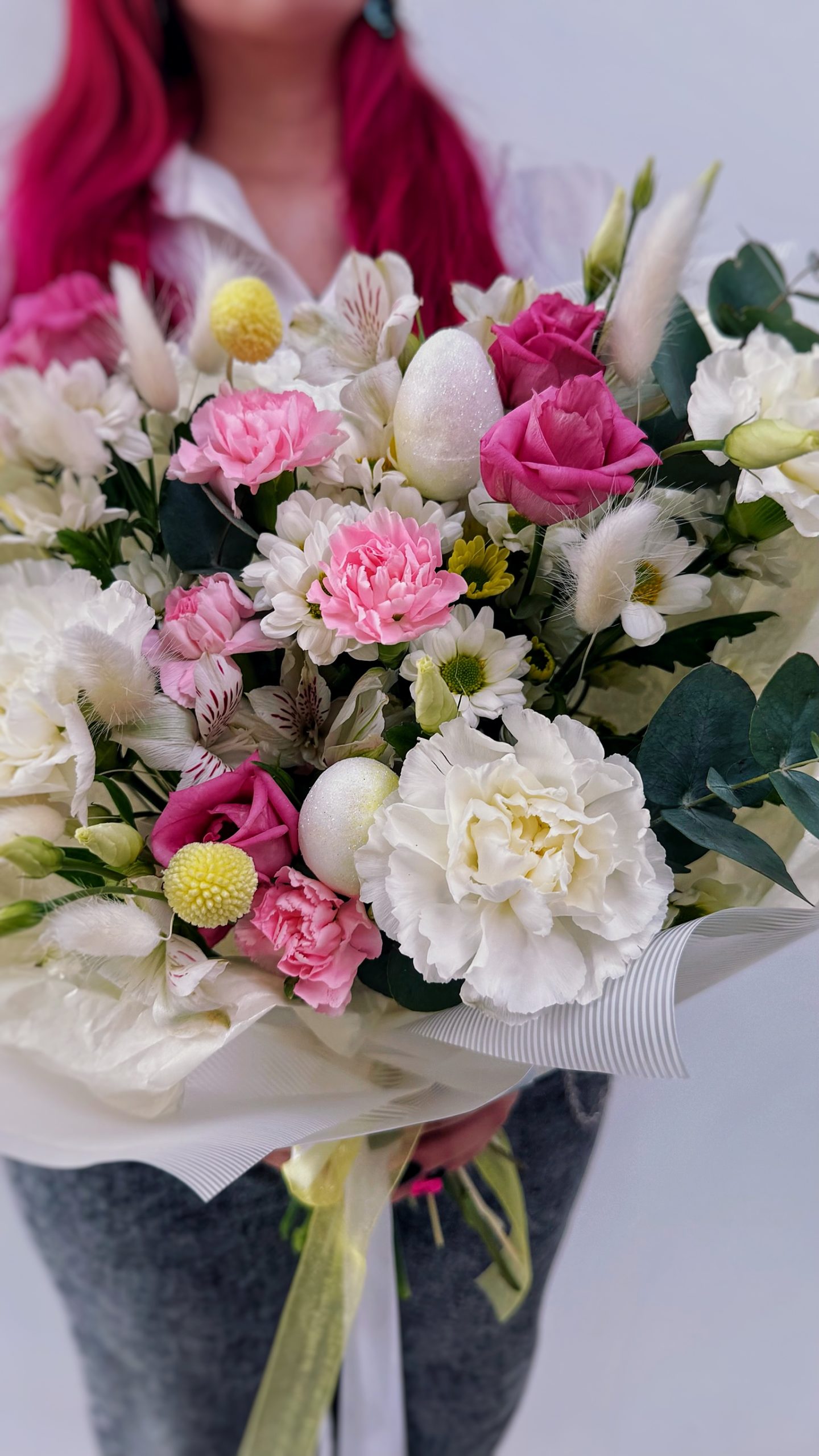 Этот готовый букет станет идеальным подарком к Пасхе, день рождения или просто знаком тёплого отношения.