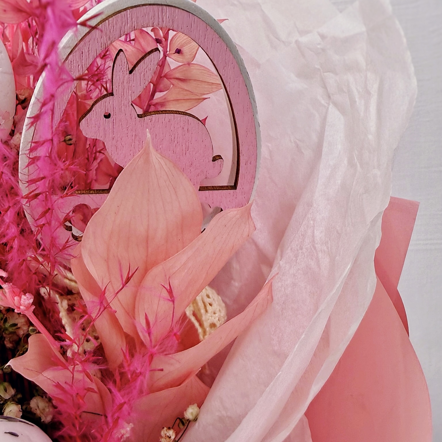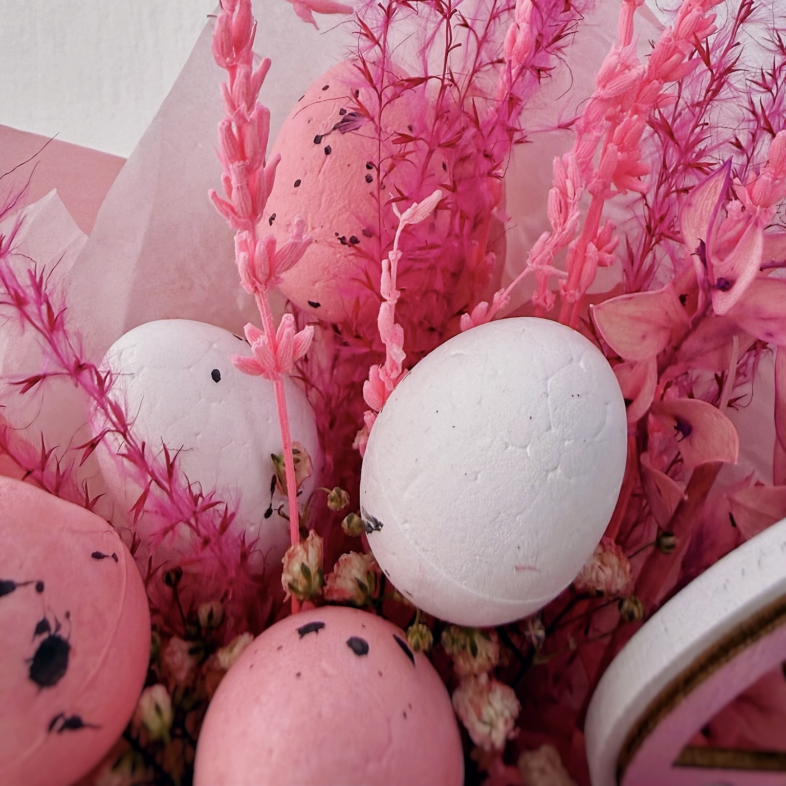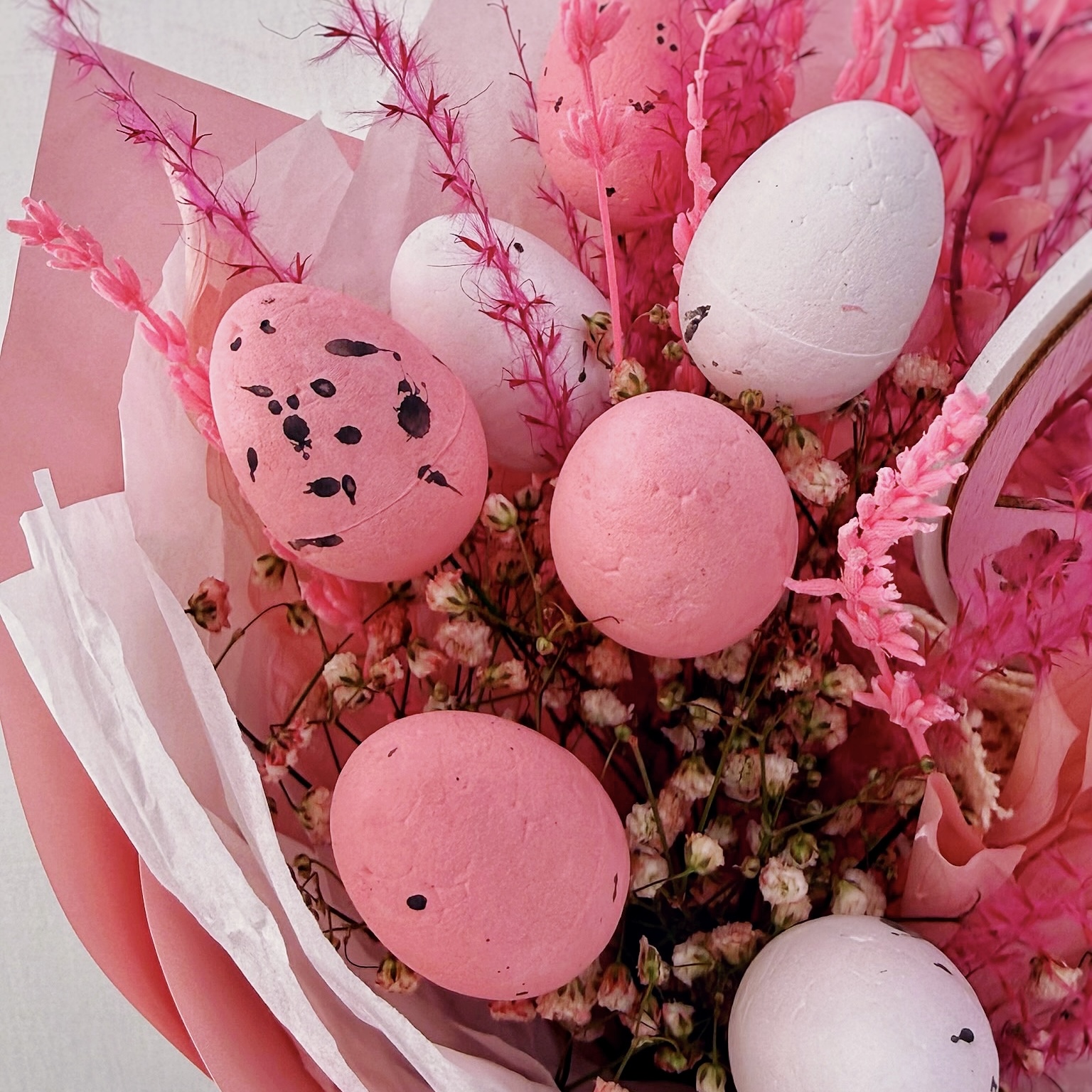 Букет не требует сложного ухода — лаванда и сухоцветы долго сохраняют свою красоту и аромат, поэтому подарок будет радовать получателя и после того, как отзвучат пасхальные дни