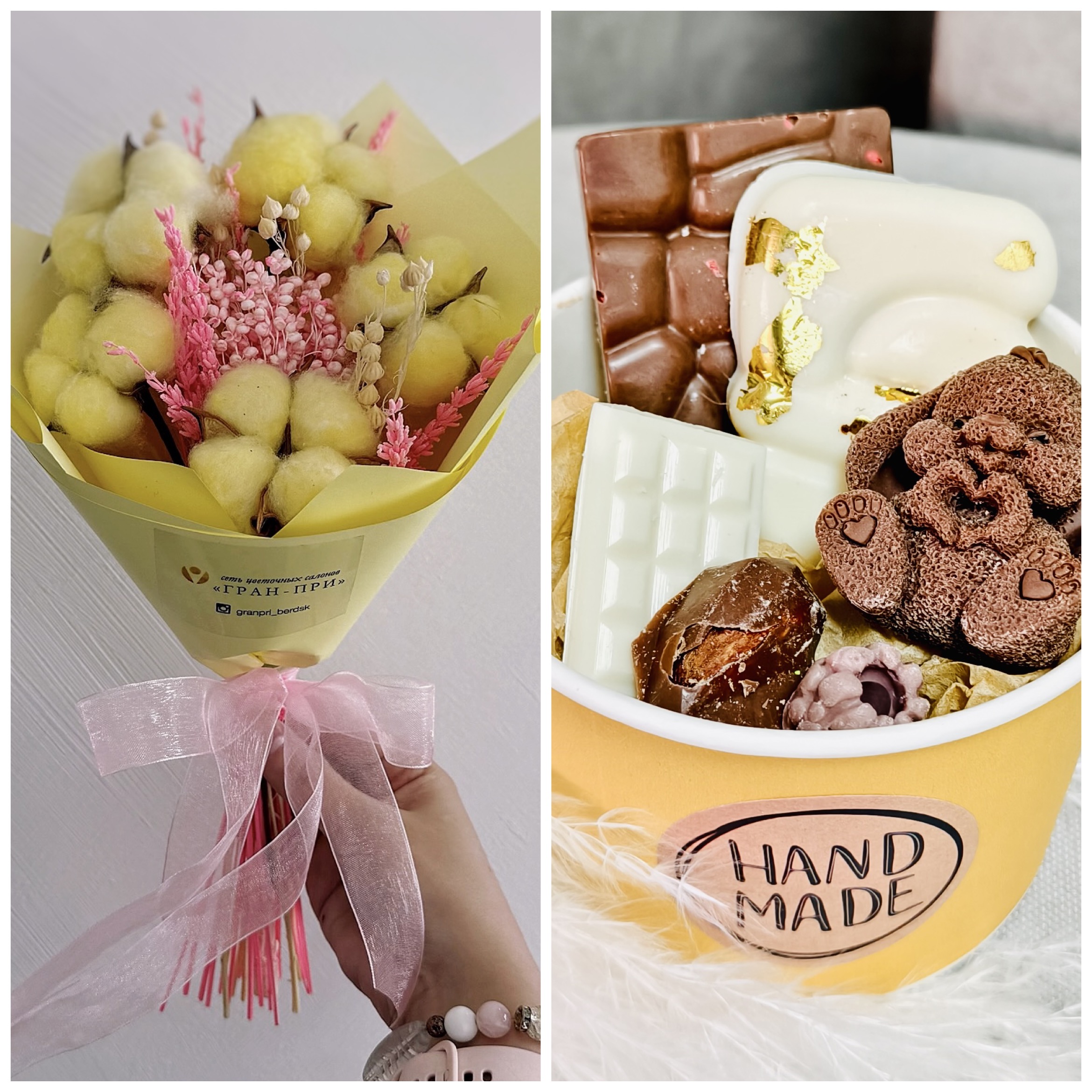 Праздничный Набор: букет из сухоцветов, шоколад ручной работы в крафт боксе