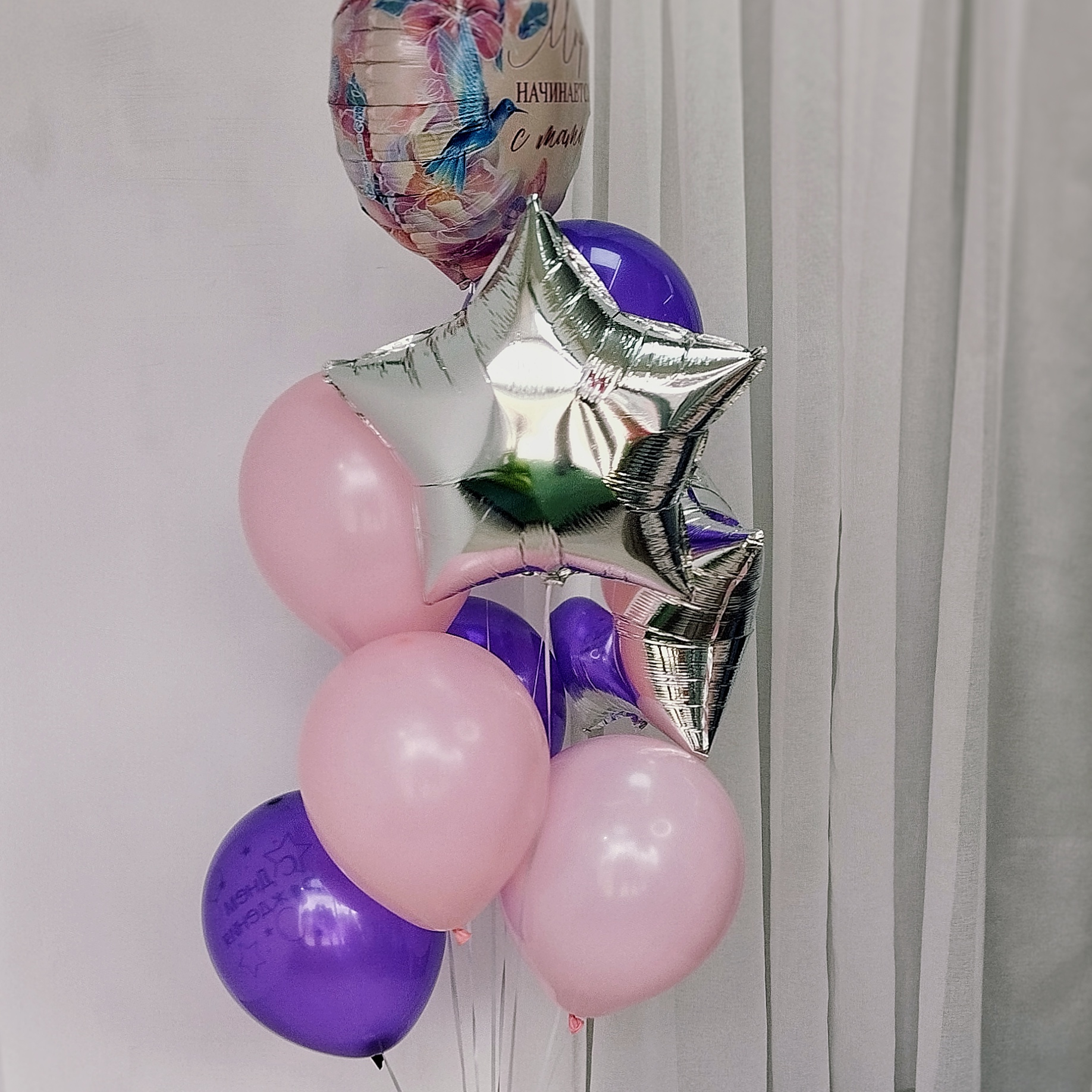Каждая охапка собирается индивидуально — вы сами выбираете количество шаров от 5 до 25 штук, чтобы подарок идеально подошёл по размеру и бюджету.