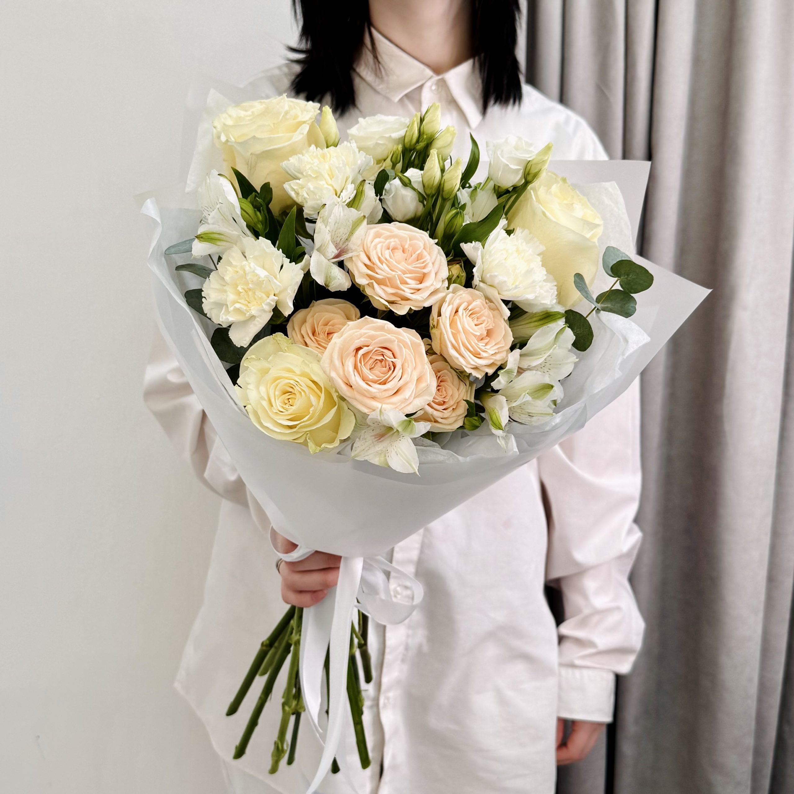 На фотографии букет размером S 25-30 см
