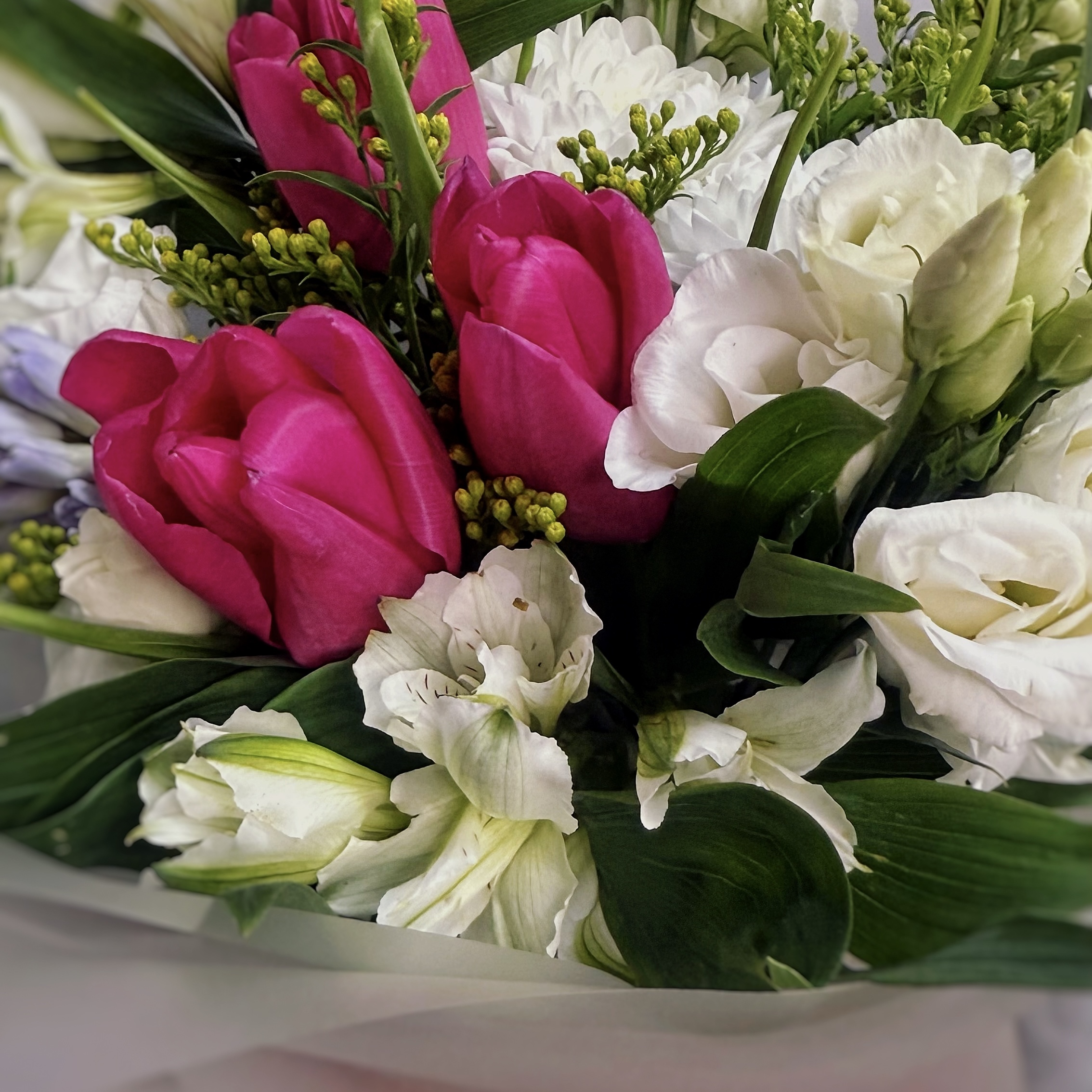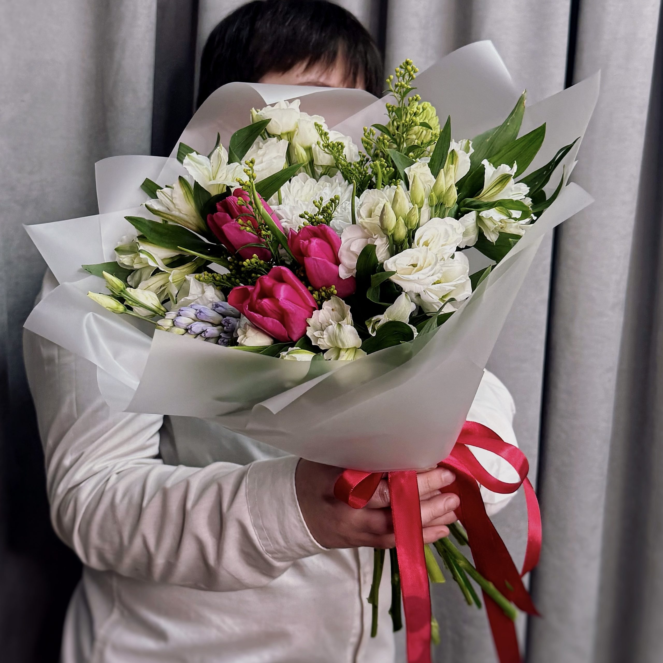 Весна — это не только яркие краски, но и неповторимые ароматы. В цветочном салоне «Гран При» в Бердске вас ждёт готовый букет, который пробуждает все чувства. Яркие тюльпаны, душистые гиацинты и изящная эустома создают идеальную весеннюю композицию.
