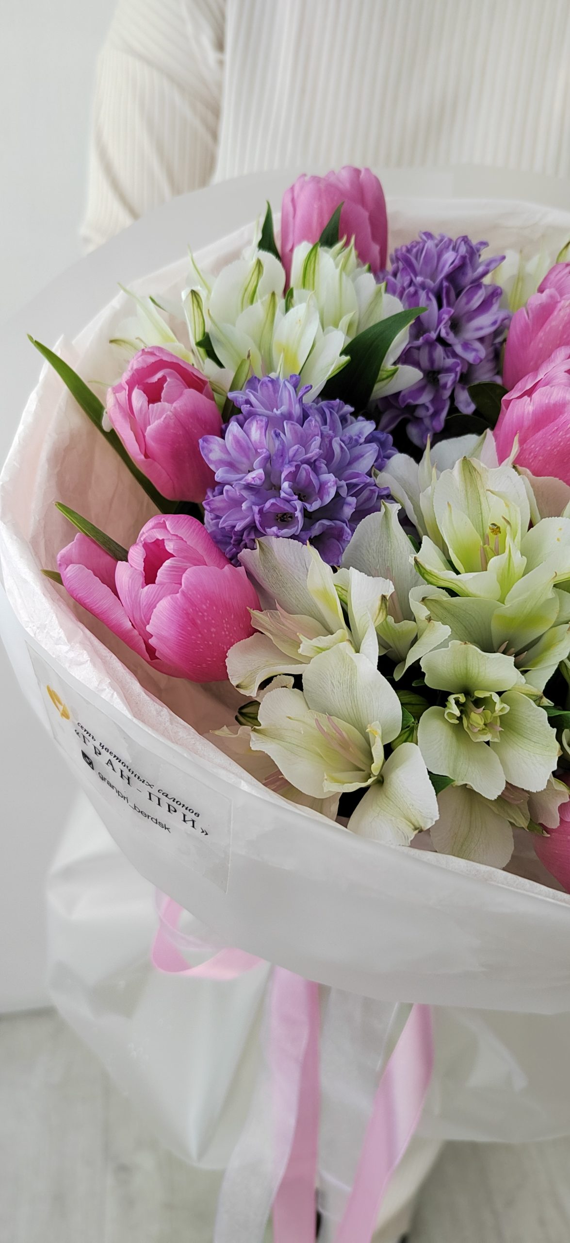 Встречайте главный хит этой весны! Нежный, ароматный и невероятно стойкий букет, который мы создали специально для вдохновения. В основе букета — благородные розовые тюльпаны и объёмные сиреневые гиацинты, дарящие первый весенний аромат.