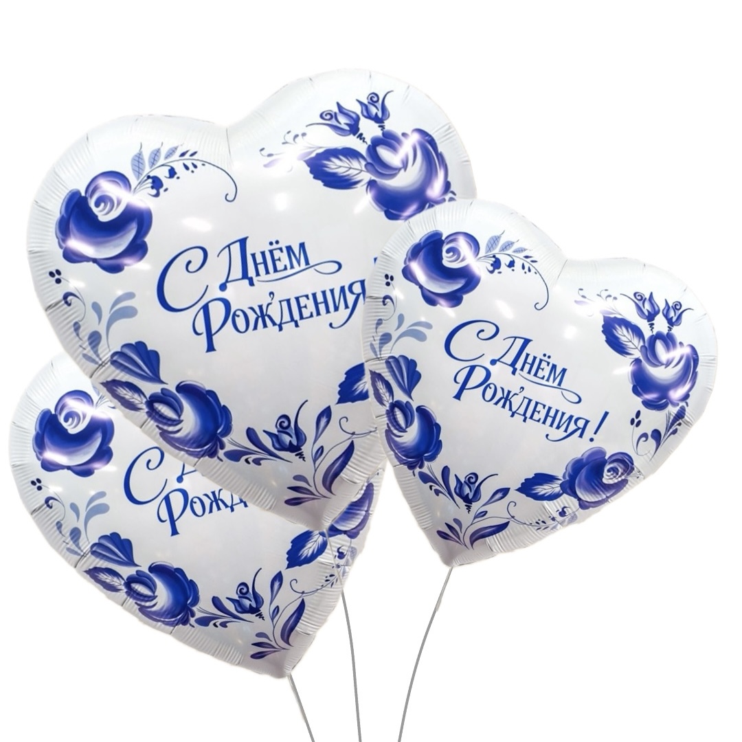 Надпись «С Днем Рождения» на воздушном шаре в форме сердца с узорами Гжель