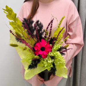 Букет упакован в стильную фирменную коробку с крышкой, с полной защитой от перепадов погоды (жара, мороз, ветер или дождь — заказывайте букет в любую погоду)! В комплекте с букетом мы прилагаем инструкцию по уходу за букетом и средство для продления жизни цветов.