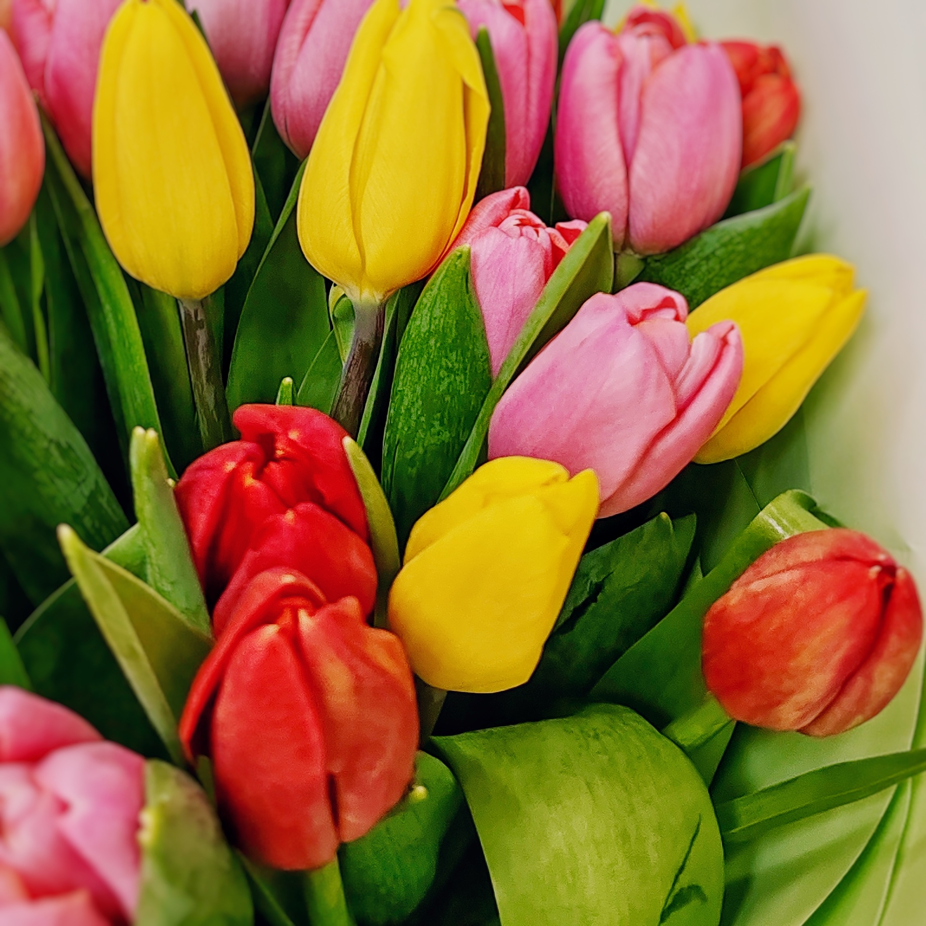 В салоне цветов «Гран При» Бердск вы можете купить букет из тюльпанов, собранный в стильный микс из самых разных оттенков. В отличие от стандартных моно-букетов, наше предложение выглядит более ярко, богато и оригинально